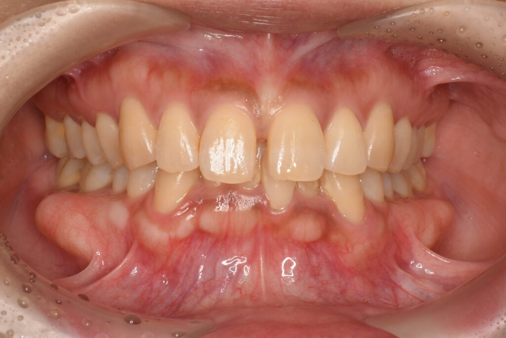 患者様は、上下前歯の叢生(歯のガタつき)やデコボコの不揃いな歯並びに加え、「食べ物が詰まりやすい」「下の前歯が磨きにくい …続きを見る